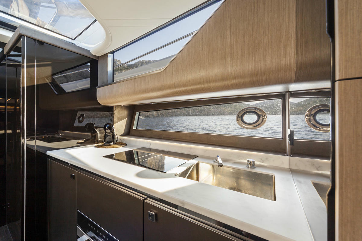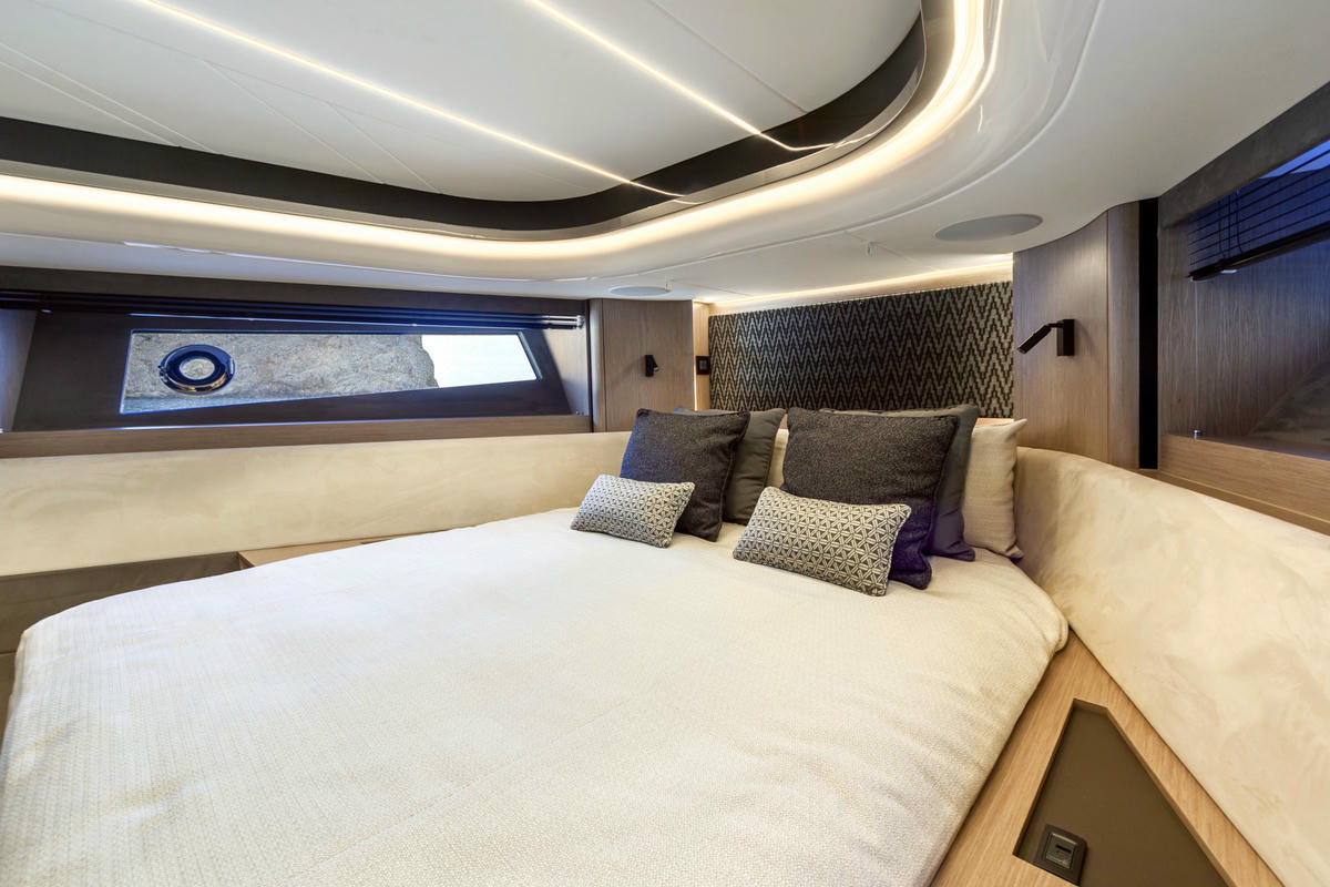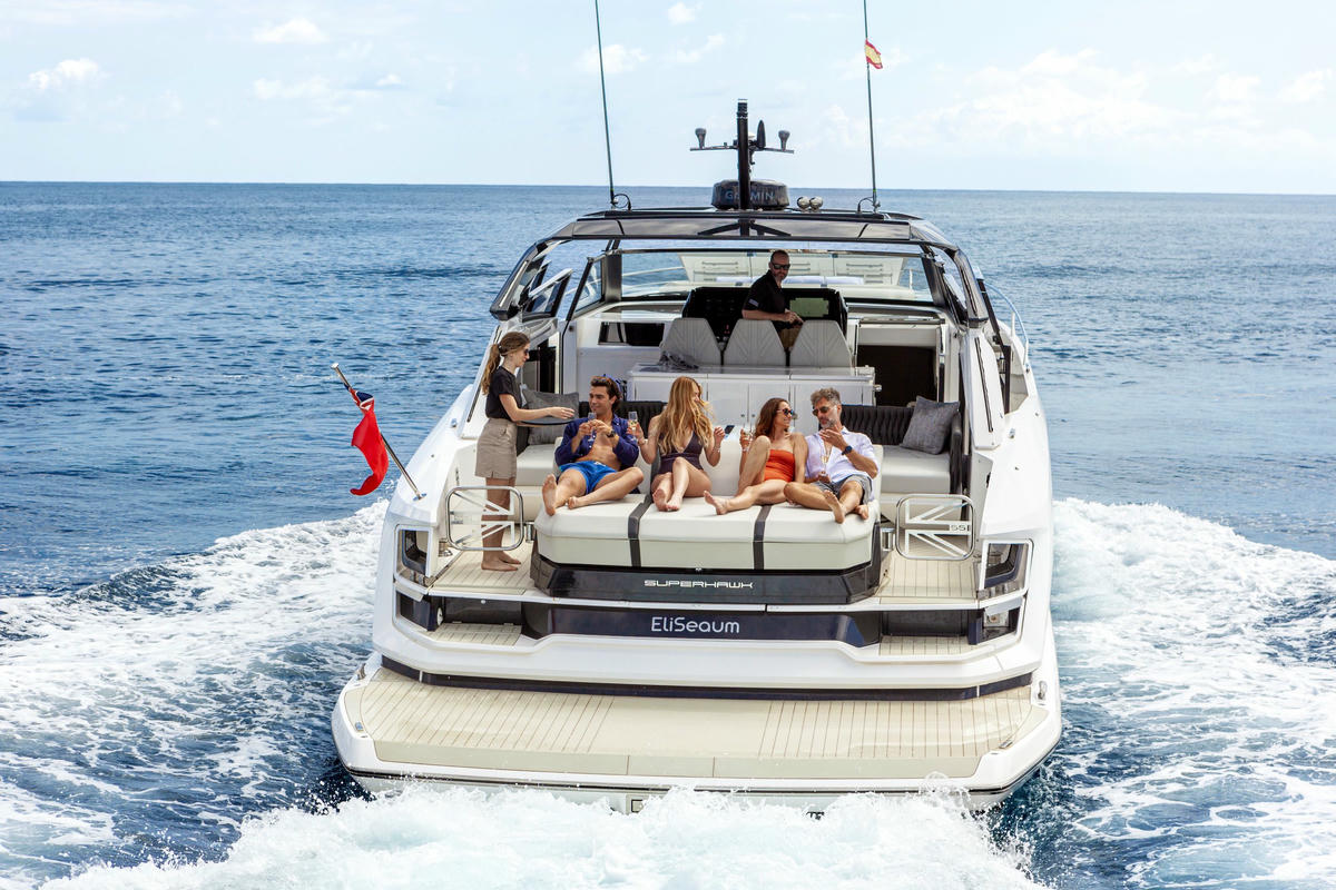 The SUNSEEKER SUPERHAWK 55 features two fully equipped double cabins and two bathrooms. There are two sun decks: