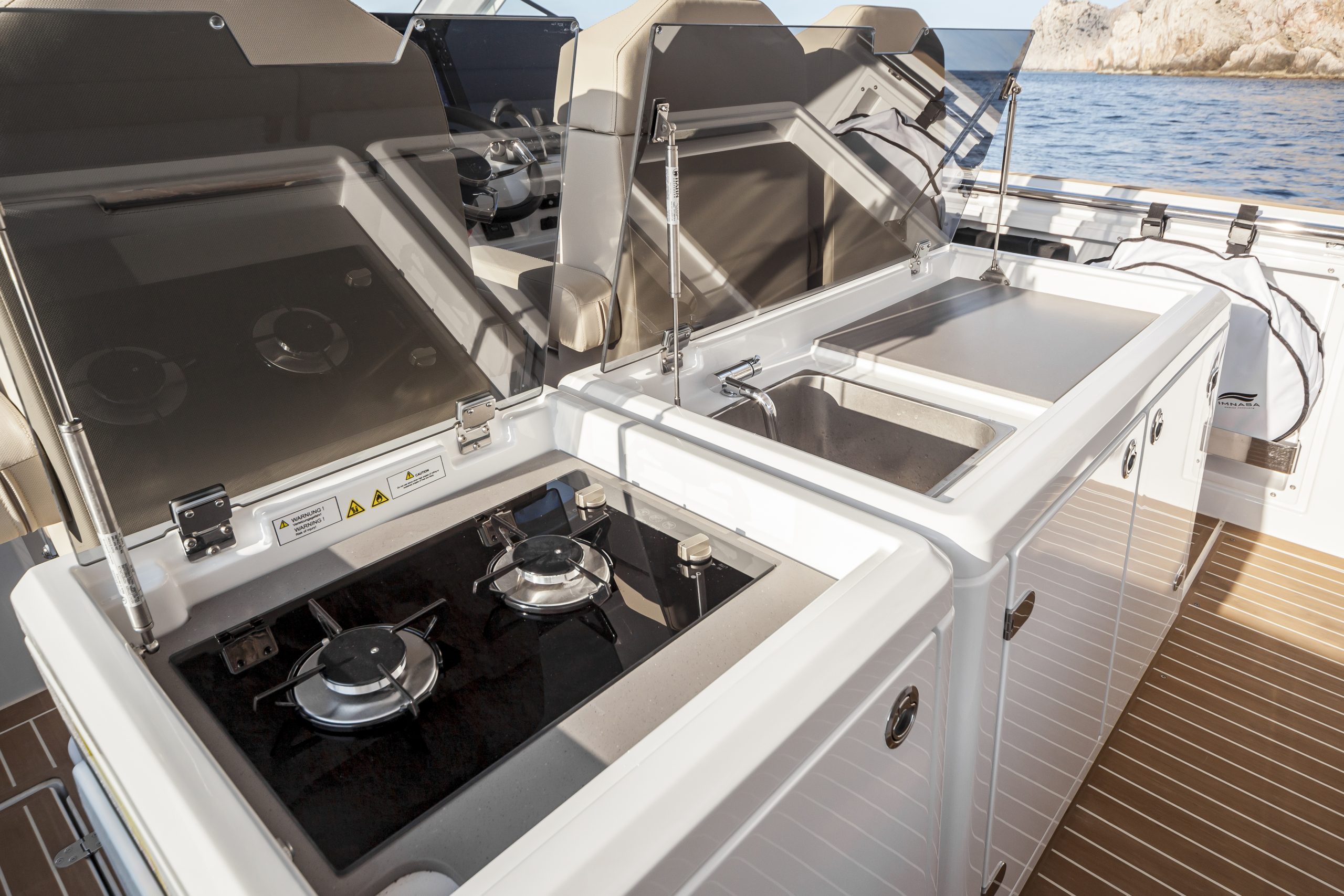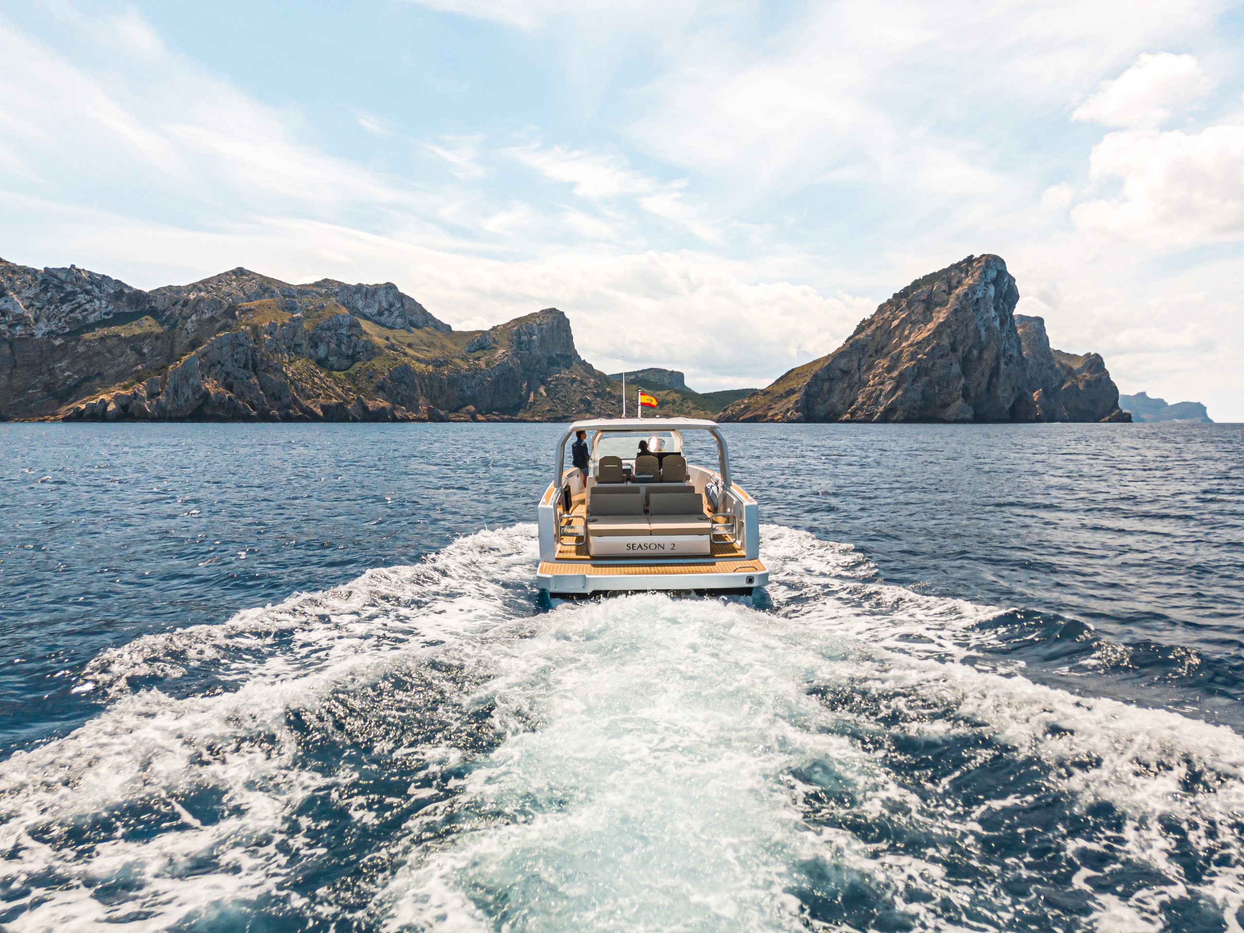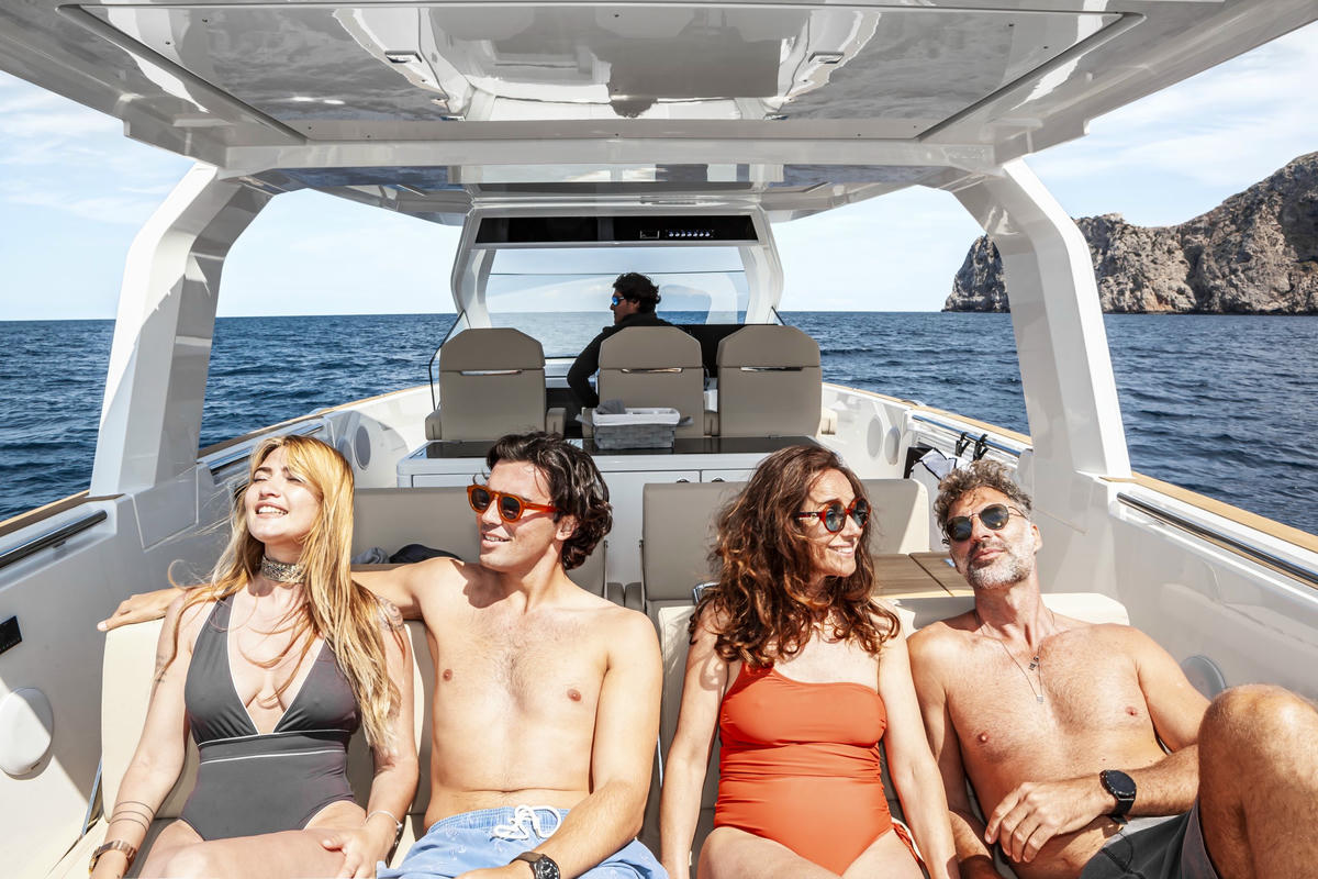 le solarium avant, permettant à 3 passagers de profiter du soleil majorquin, et le solarium arrière, où jusqu’à 4 passagers peuvent s’allonger confortablement tout en admirant le paysage.