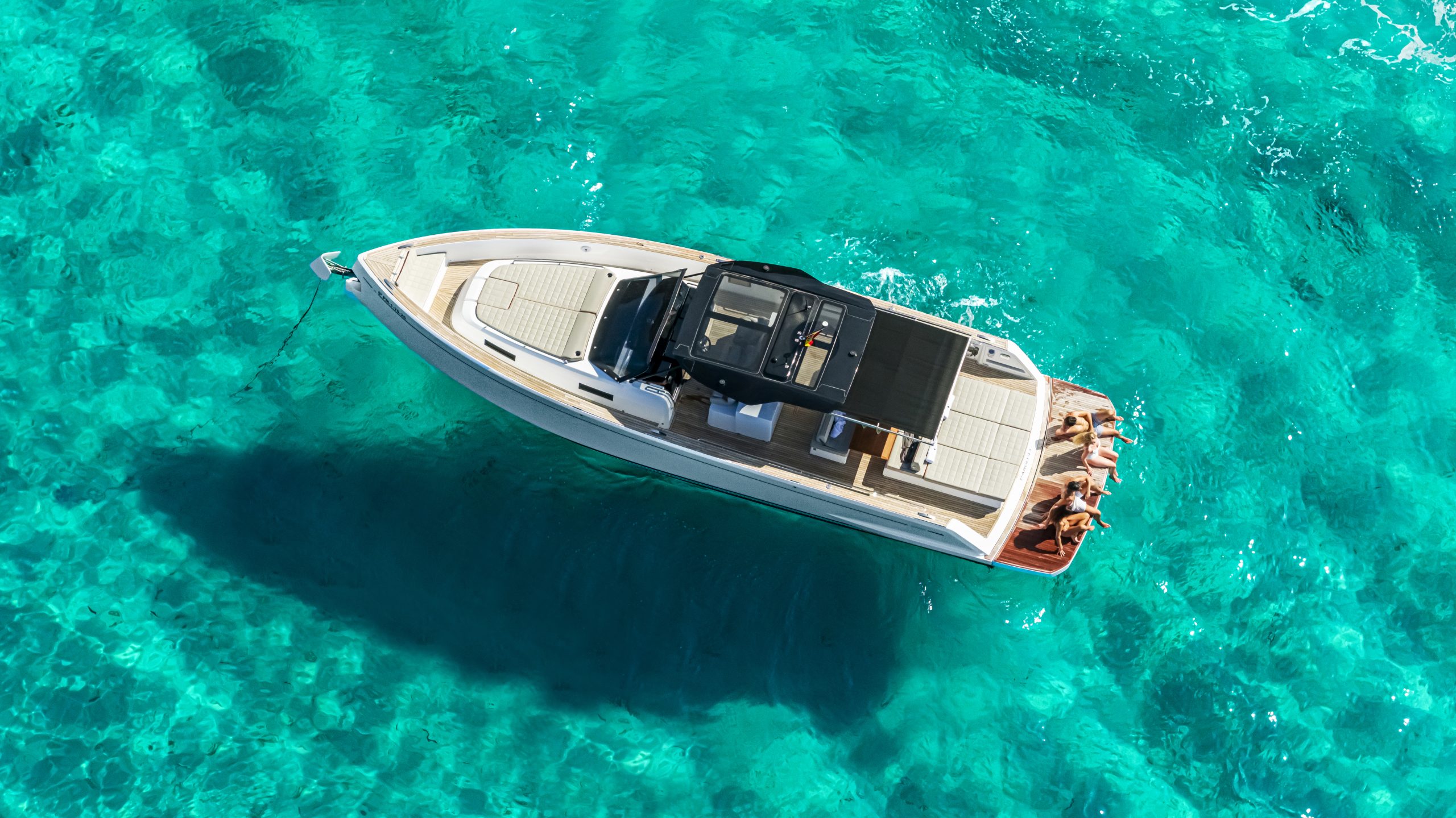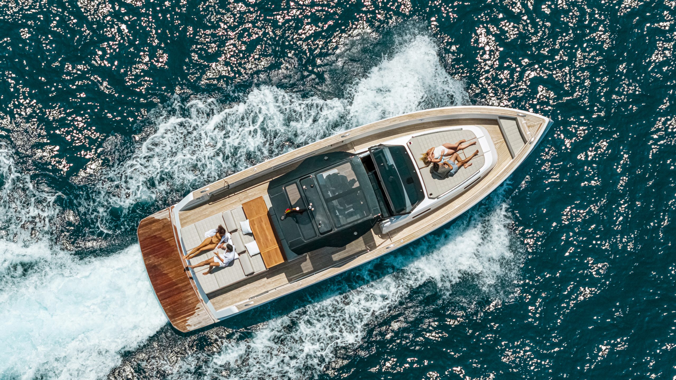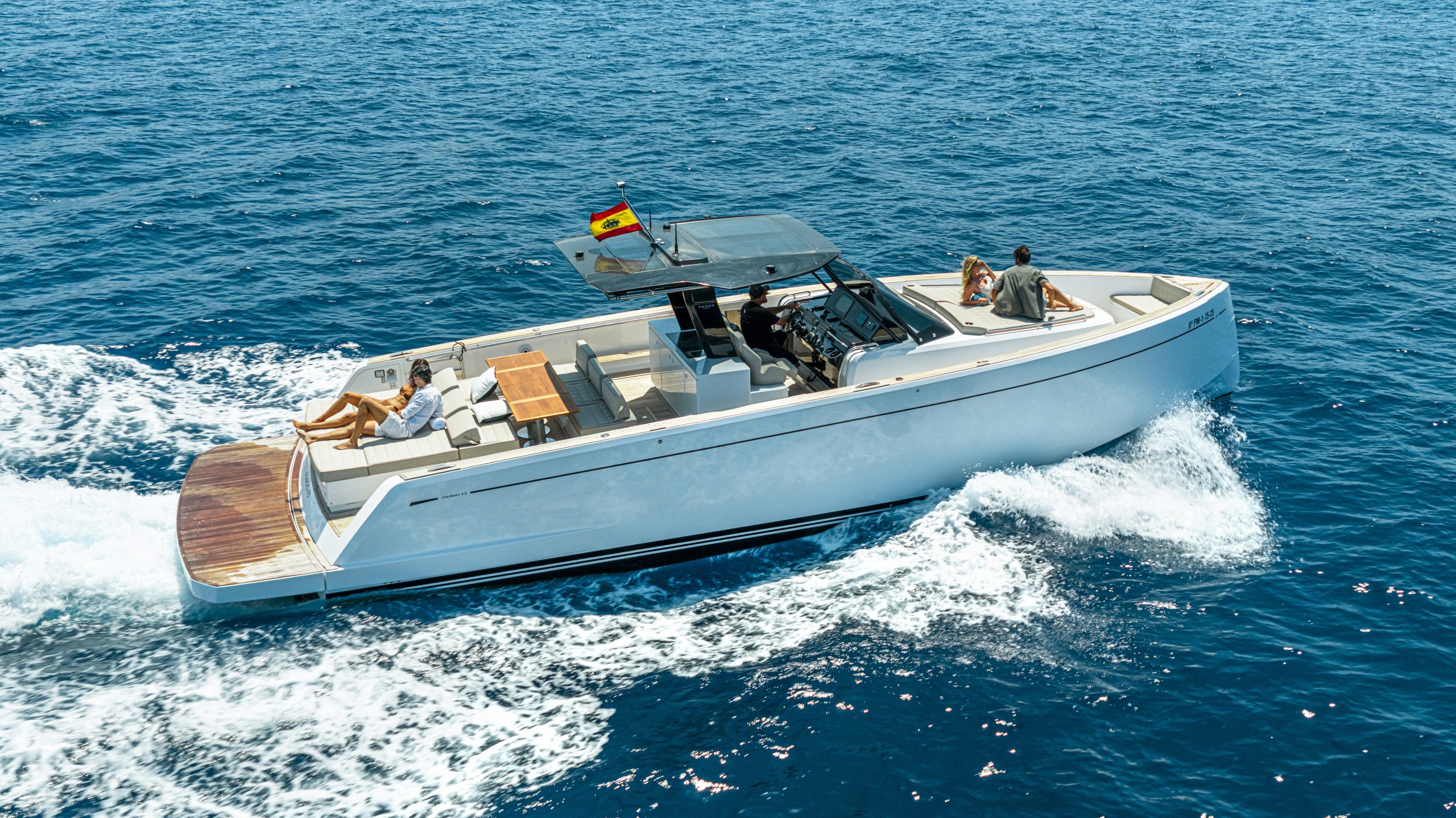 Ce yacht de 13 mètres atteint une vitesse maximale de 35 nœuds et navigue confortablement à une vitesse de croisière de 18 nœuds.