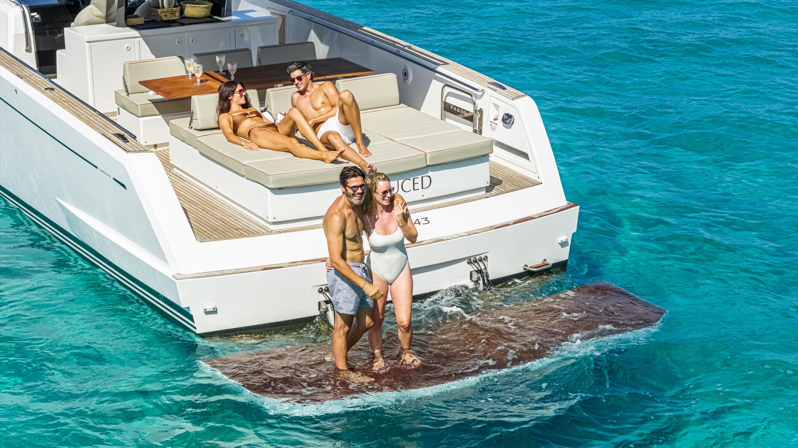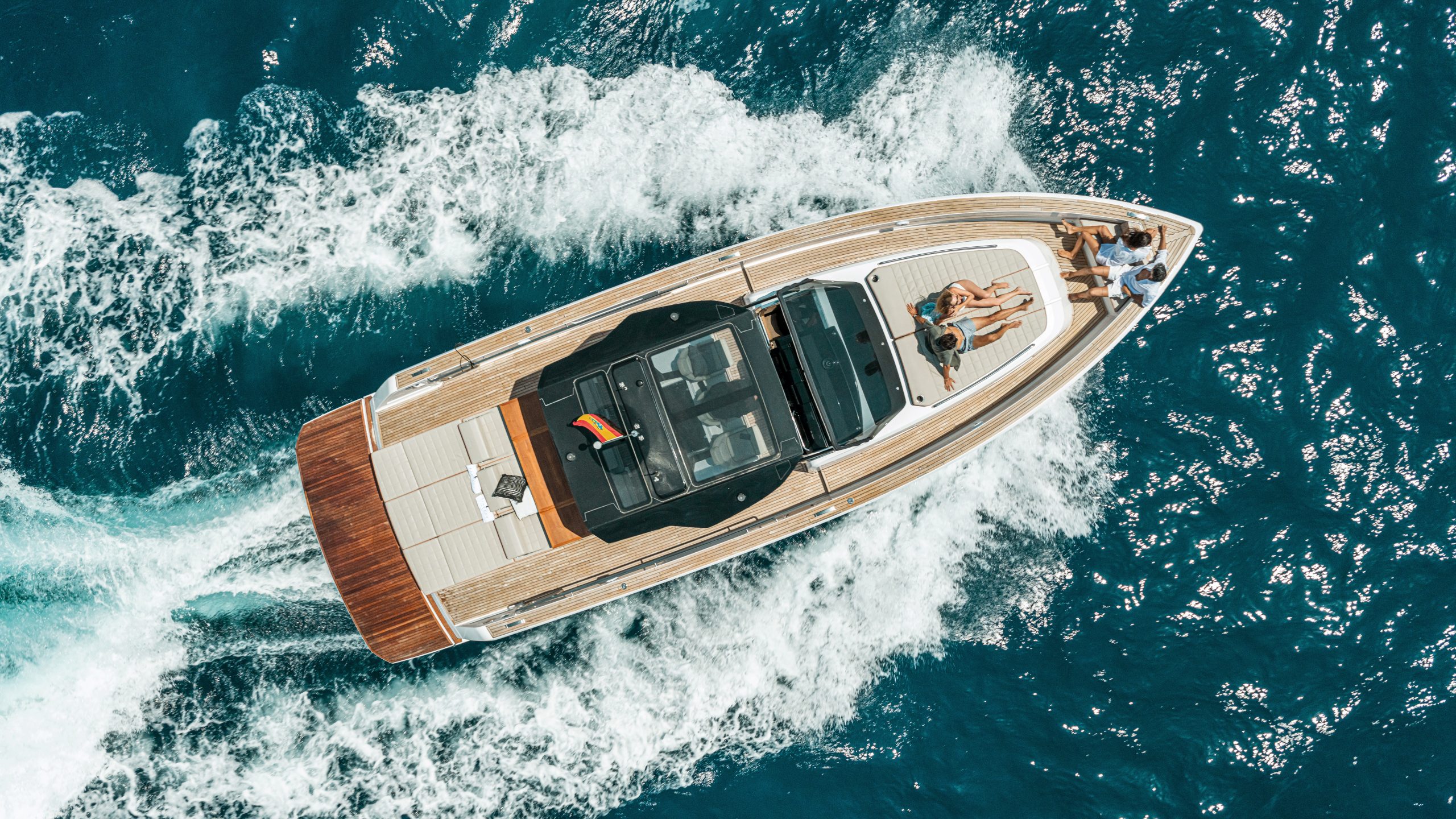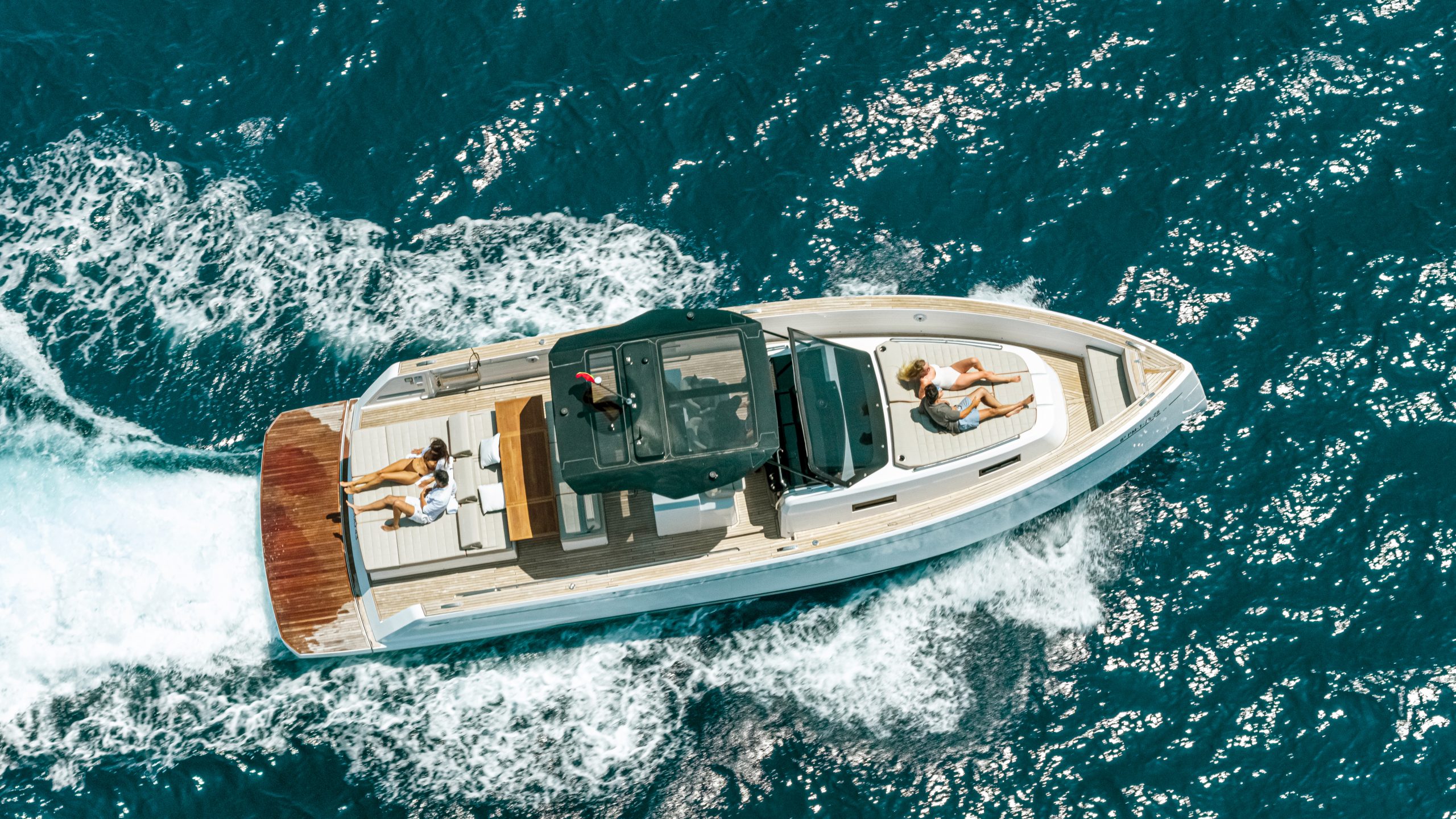 Ce yacht de 13 mètres atteint une vitesse maximale de 35 nœuds et navigue confortablement à une vitesse de croisière de 18 nœuds.