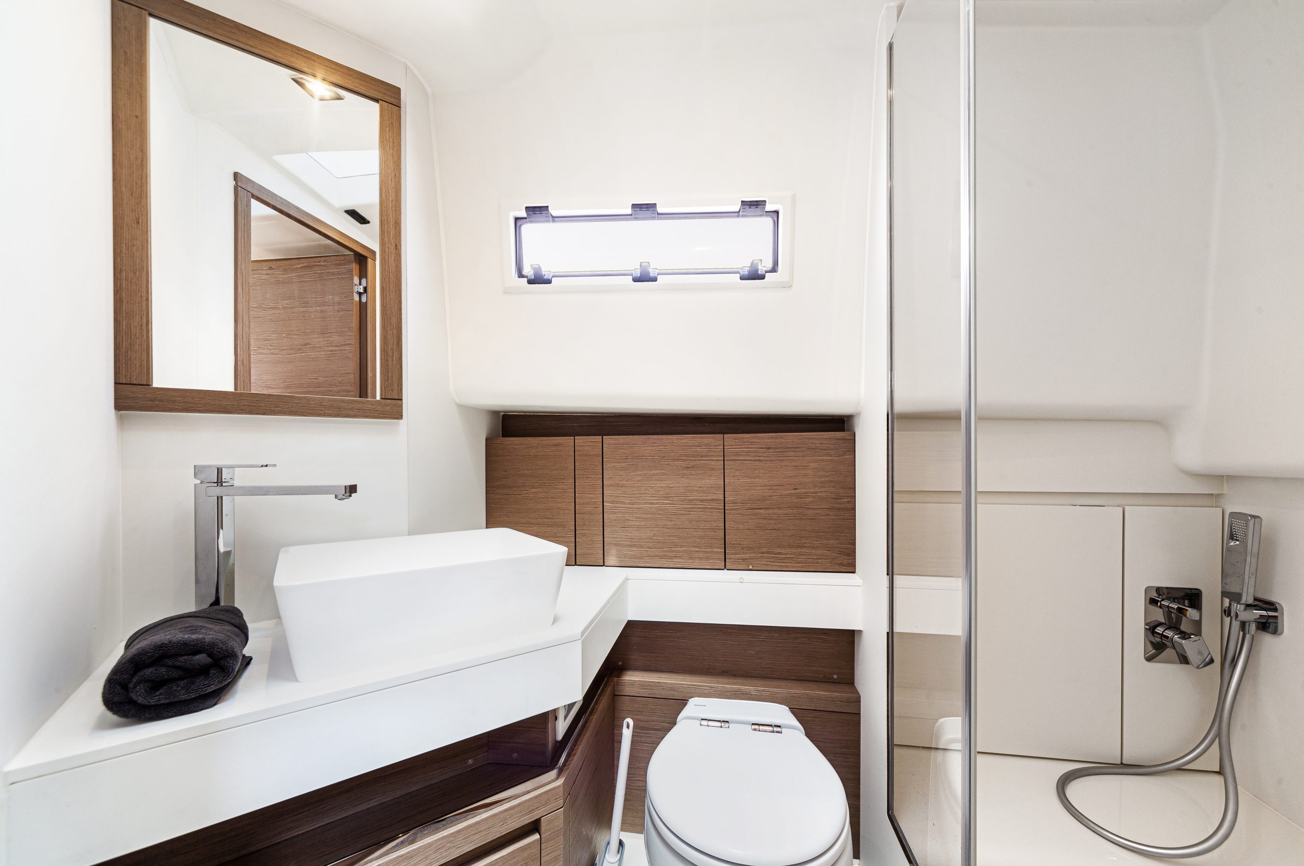 Il dispose de deux cabines — une grande cabine VIP et une cabine twin — ainsi que d’une salle de bain complète, d’une machine à glaçons et de trois réfrigérateurs pour rester au frais dans les plus beaux mouillages.