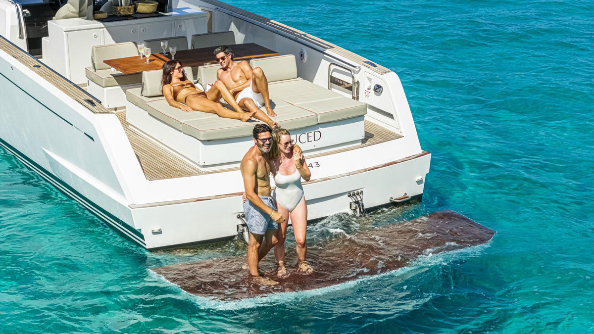 Le yacht comprend une cuisine complète, un congélateur, des systèmes audio et permet une location avec nuitée pour jusqu’à 4 personnes lors de locations de deux jours. Il offre également deux grands bains de soleil, à l’avant et à l’arrière.