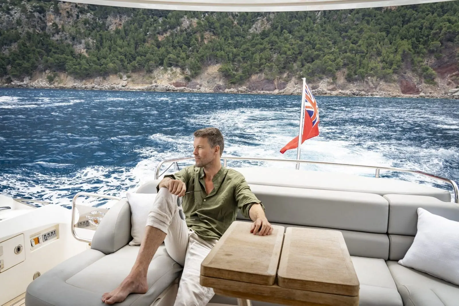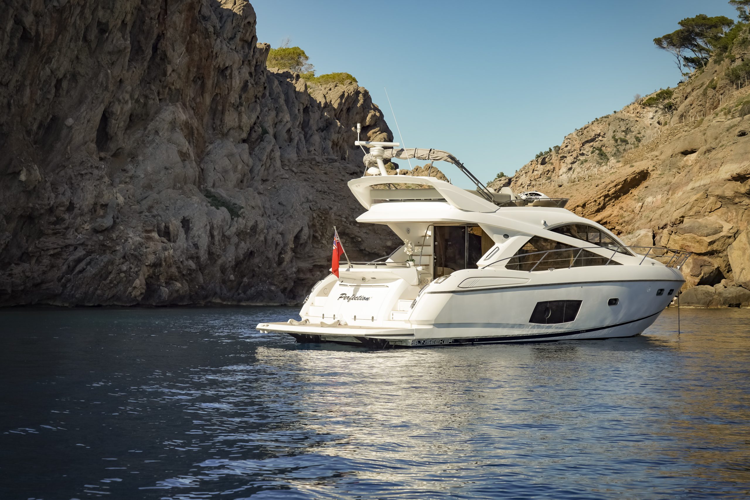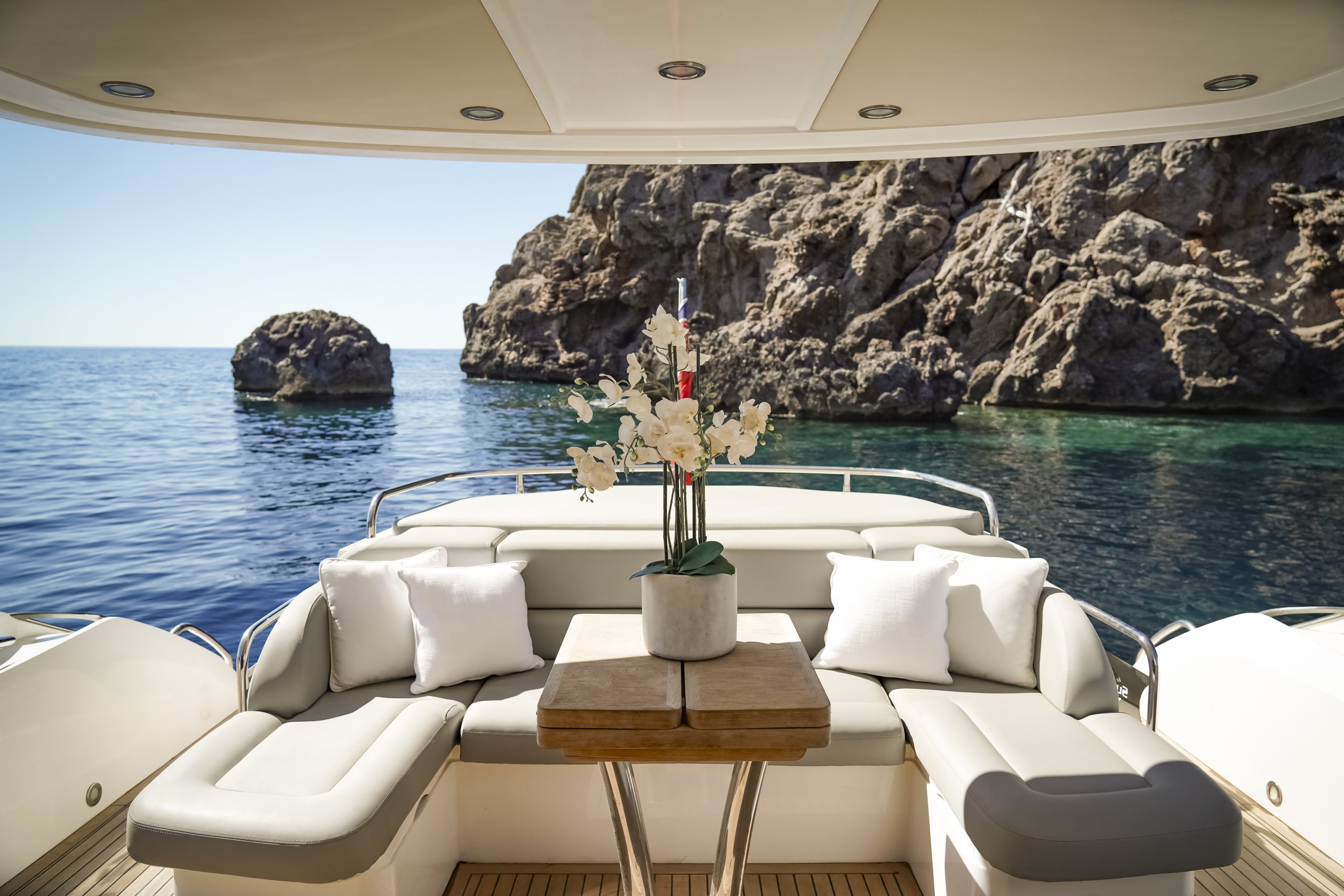 Ce Sunseeker Manhattan 53 consomme 600 € pour 4 heures de navigation vers Cala Vella et Cala Verda ou El Toro, Portal Vells ou Illetes, et 1 200 € pour des charters de 8 heures vers Colonia de Sant Jordi et Es Trenc ou vers Dragonera ou Cala Llamp.