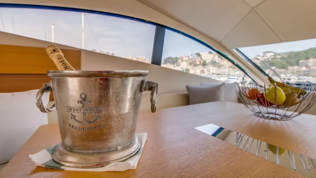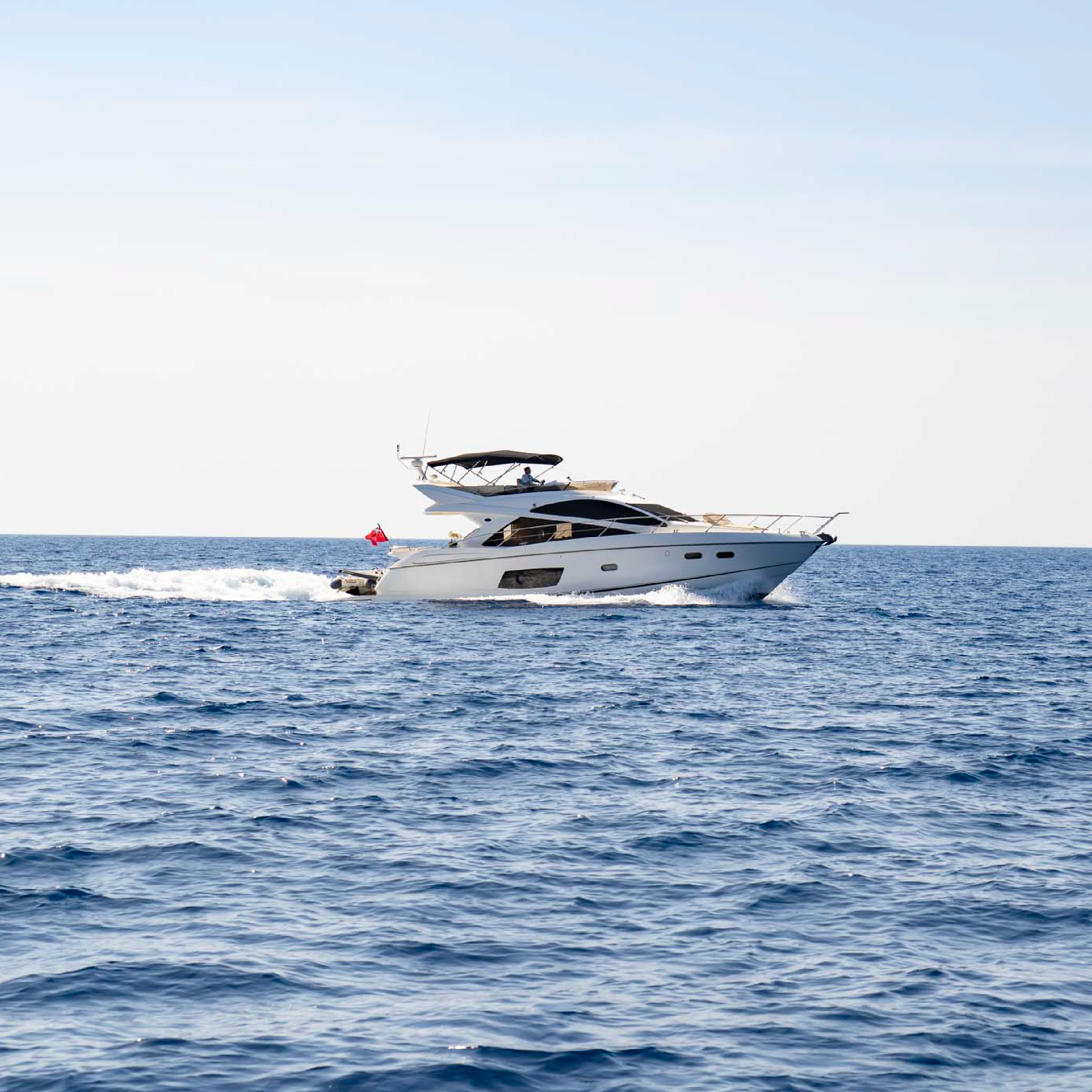Ce Sunseeker Manhattan 53 consomme 600 € pour 4 heures de navigation vers Cala Vella et Cala Verda ou El Toro, Portal Vells ou Illetes, et 1 200 € pour des charters de 8 heures vers des destinations telles que Colonia de Sant Jordi et Es Trenc ou vers Dragonera ou Cala Llamp.