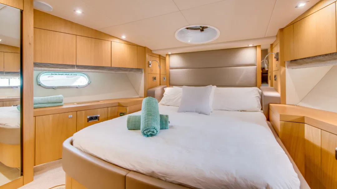 Ce yacht spacieux dispose d’un grand salon avec climatisation et chauffage, de deux cabines doubles VIP et d’une cabine twin, permettant d’héberger jusqu’à 6 passagers, avec la possibilité d’accueillir également un enfant jusqu’à 6 ans.